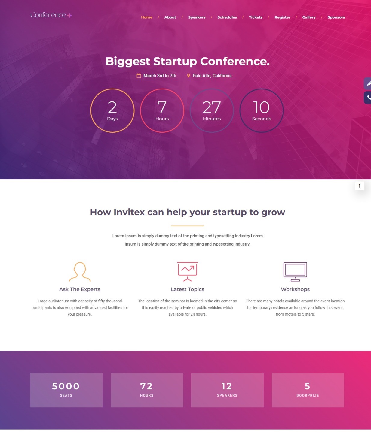 Invitex is a premium one-page website template designed specifically for events and conferences. Whether you're organizing a small gathering or a large-scale event, Invitex provides all the essential features you need to create a professional and engaging website. It’s responsive, highly customizable, and built to help your event stand out.
